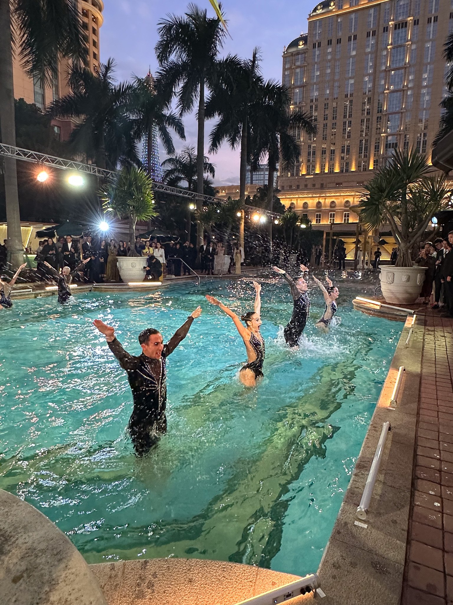 開幕禮壓軸好戲是第二天,即昨晚在AP House對出泳池舉行的Pool Side Party。品牌大中華區總裁Peggy Hu致辭後,是一場精彩大型舞蹈表演及韻律泳演出,將全場氣氛推至高峰。