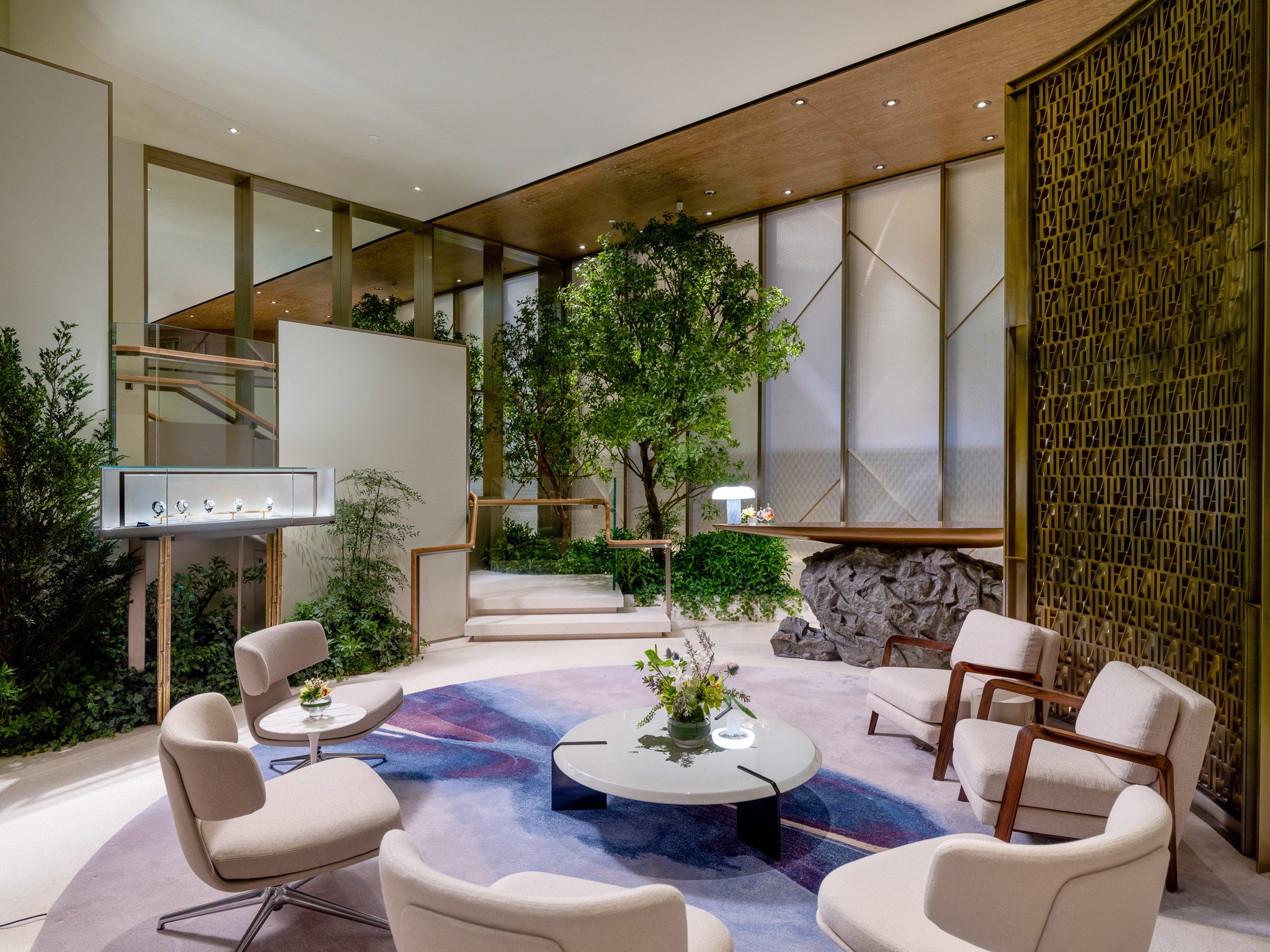 穿過酒吧後的休息區更加震撼,特高天花和大片落地窗氣派十足;又或可外出到露台休息區,在日光還醉人泳池美景下欣賞品牌腕錶,真是寫意到極。這寬闊大自然景致也精妙地呼應古老的製錶工作坊。 店內還設有專屬的大師班室,讓賓客可在此體驗製作精密腕錶的過程。