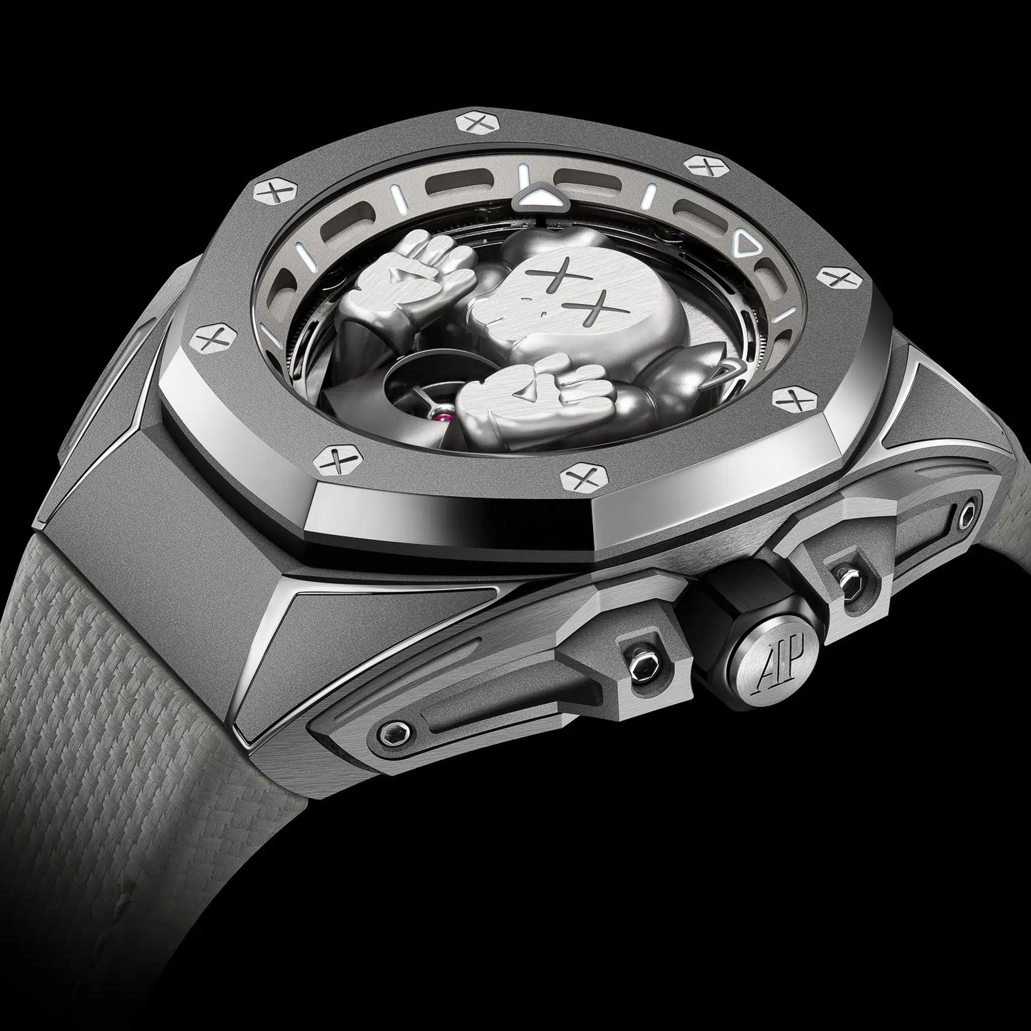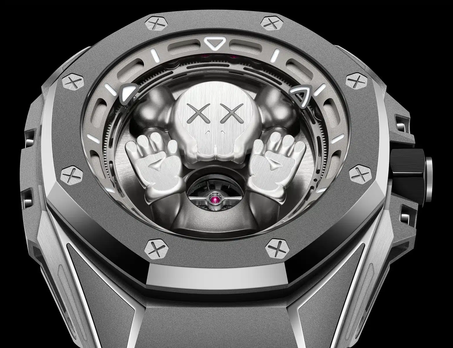 這枚名為Royal Oak Concept Tourbillon “Companion” 43mm的腕錶,由AP及KAWS兩大單位兩年時間研發,腕錶亮點是正中央的鈦金屬製迷你Companion公仔。