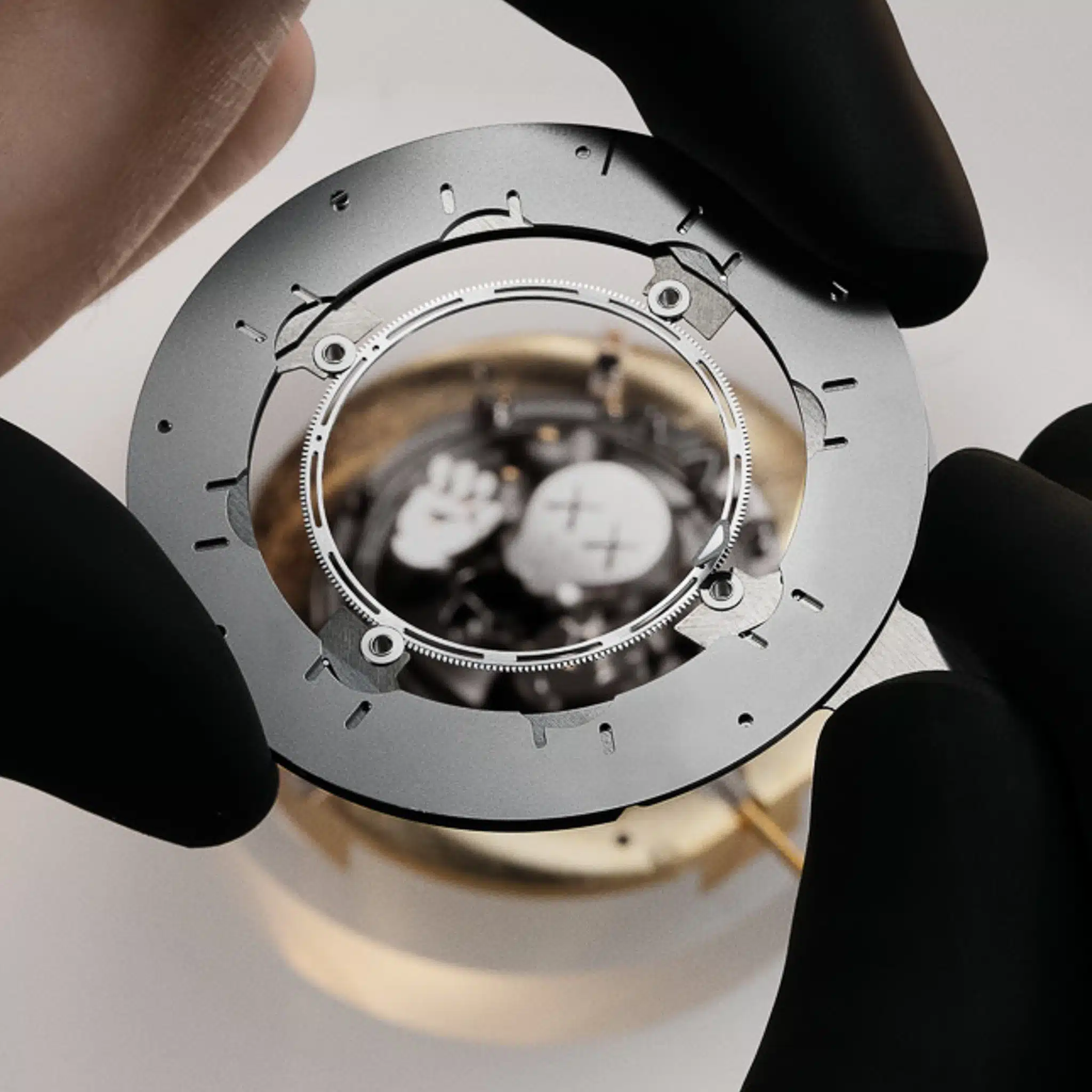 為了無阻擋地完全展示Companion公仔,品牌特別為腕錶研發全新2979手動上鍊機芯,採用創新的外緣時間顯示。兩個可見的交疊齒輪,由小齒輪和滾輪牽引,驅動着時針和分針圍繞機芯和錶盤的外緣旋轉。