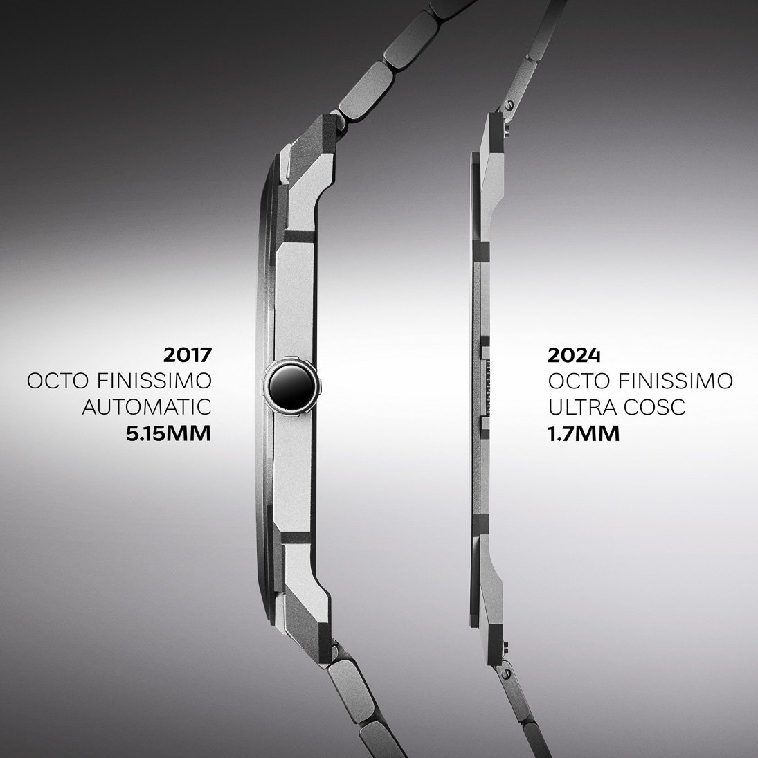 2022年BVLGARI發表厚度1.80mm的Octo Finissimo Ultra腕錶時,據說1.80mm不是品牌的極限,品牌其實可做到薄至1.50mm腕錶。當時訪問BVLGARI腕錶事業部董事總經理Antoine Pin時他也直認不諱。「我們確實可做得更薄,但我們的目標是製作一枚可作日常佩戴的腕錶,讓大家可以毫無顧慮地調校甚至是把玩,所以腕錶必需要有一定的防禦壓力及抗震等功能。」當這超薄腕錶紀錄在數月後被另一品牌打破時,錶迷們非常期待BVLGARI何時再重奪寶座。等到2024年,品牌終於出擊,再一次聯同複雜機械開發專家Concepto合作,推出厚度僅1.70mm的Octo Finissimo Ultra COSC,比舊有款式薄足足0.1mm,也比之前Richard Mille RM UP-01所保持的1.75mm紀錄薄了0.05mm。