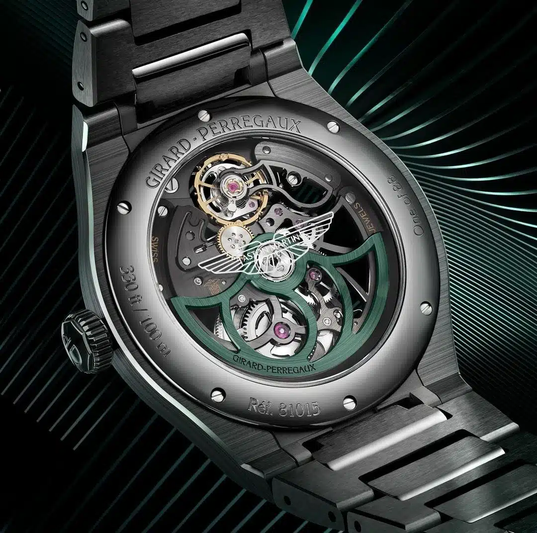 Girard-Perregaux再與英國超跑品牌Aston Martin合作,將跑車線條與製錶工藝結合,推出全新Laureato Skeleton Aston Martin Edition鏤空腕錶,限量88枚。