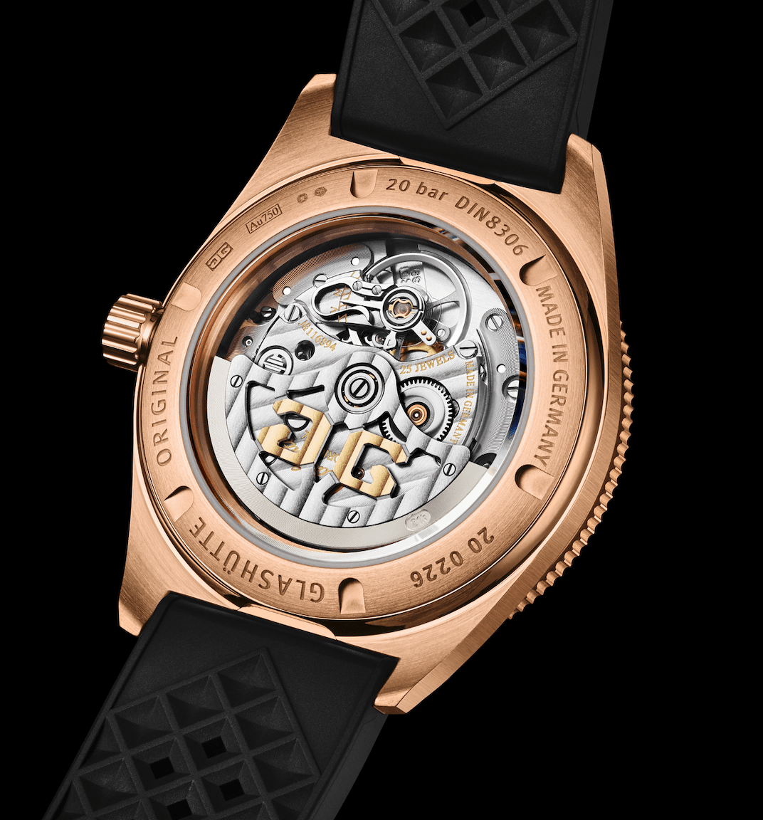 在Spezimatic RP TS 200面世50周年之際,Glashütte Original回應錶迷要求,將於2024年12月起推出搭配透明底蓋的SeaQ系列39.5mm不銹鋼及金鋼款式,展示內裡的自家39-11自動機芯,將飾有格拉蘇蒂條紋飾面的四分之三夾板、鵝頸式微調、及帶有雙G標誌的鏤空擺陀展露眼前,體現德國製錶的精髓。除了更新現行產品目錄外,品牌也將於明年一月起為SeaQ系列的現有用家提供更換透明底蓋的選擇,仍然通過200米防水測試,只需300歐元。