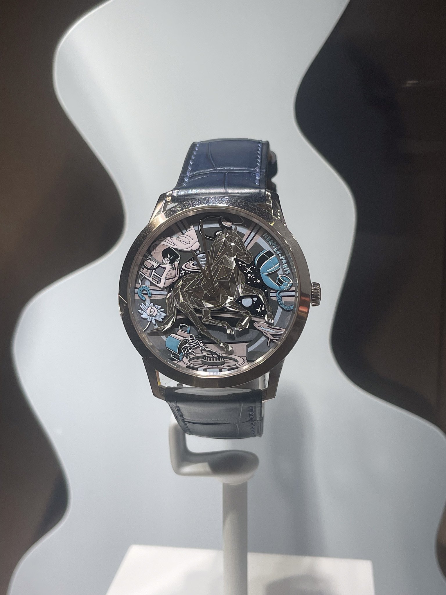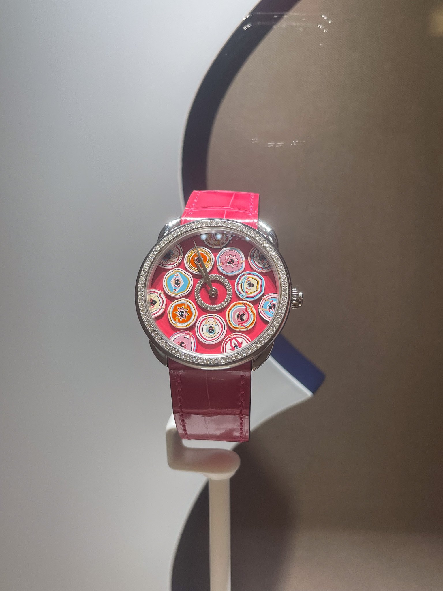 仍記得年初的Watches & Wonders日內瓦錶展,Hermès特別邀請美國視覺藝術家Erin O’Keefe設計了一個結合色彩和幾何雕塑的展館,訴說「Shapes of Time」的故事,帶領觀者沉浸於時間的不同形狀中。同場還有年度鉅作Arceau Duc Attelé及多款珍稀工藝錶。