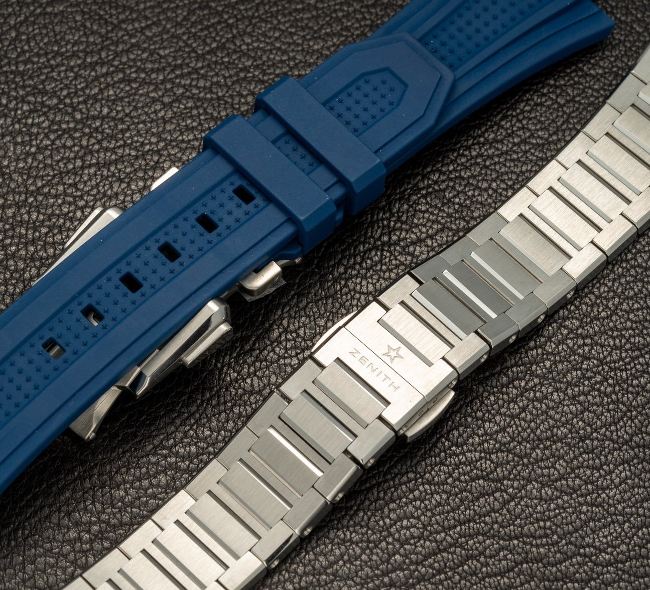 除了三列式不銹鋼錶鏈外,這錶也隨附星形圖案橡膠錶帶,透過快拆錶帶裝置即可輕鬆替換。