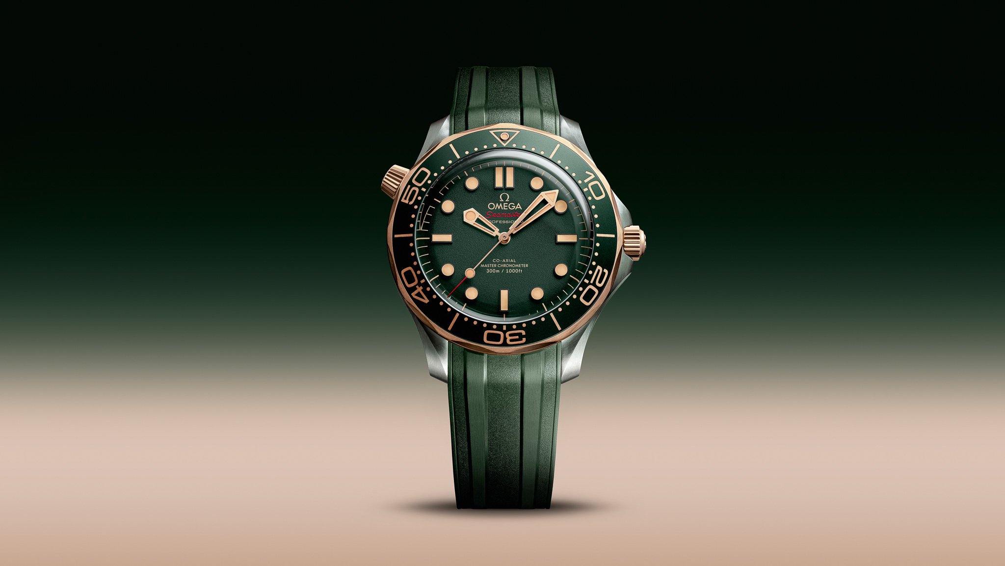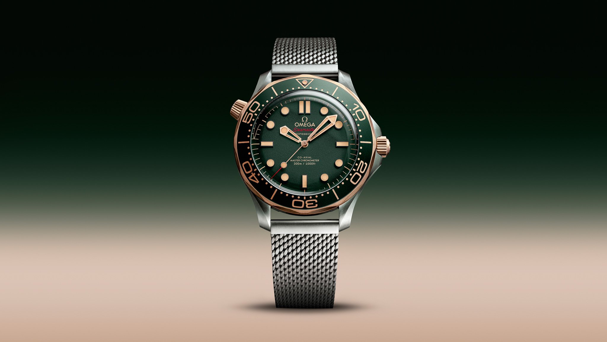 一如早前推出的黑色和灰色版,這錶的原型靈感來自占士邦在電影《007:生死有時》中佩戴的Seamaster Diver 300M 007 Edition,備有弧拱形藍寶石水晶鏡面和與占士邦腕錶同款的網紋鈦金屬鏈帶,另有綠色橡膠錶帶選擇。