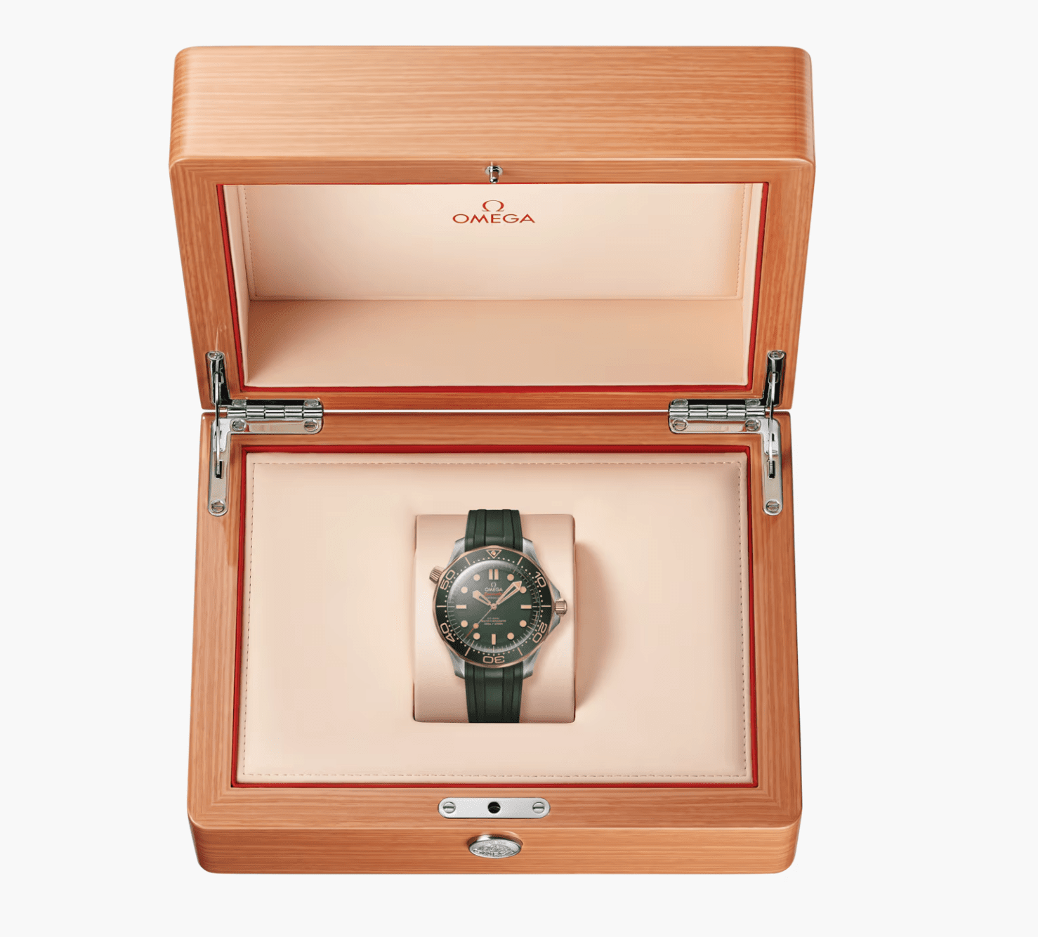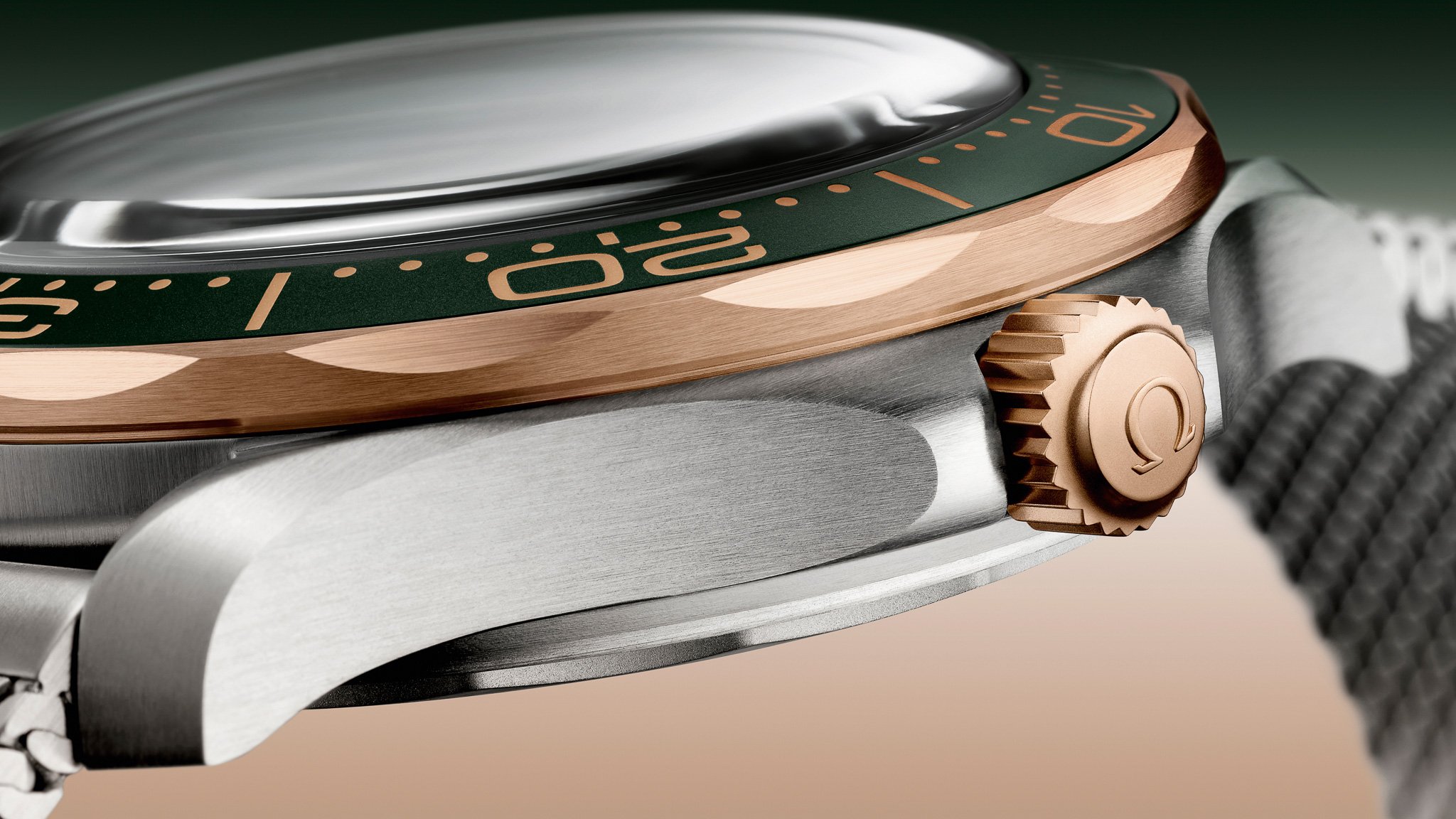 Daniel Craig在巴黎奧運率先佩戴現身的無日期版Seamaster Diver 300M在11月中才剛正式發佈,Omega在兩星期後的今日隆重加推採用42mm 2級鈦金屬錶殼配襯青銅金錶圈、錶冠和排氣閥門的全新版本,溫潤的銅色加上綠色錶圈和錶盤的映襯,滲透濃厚的復古味。
