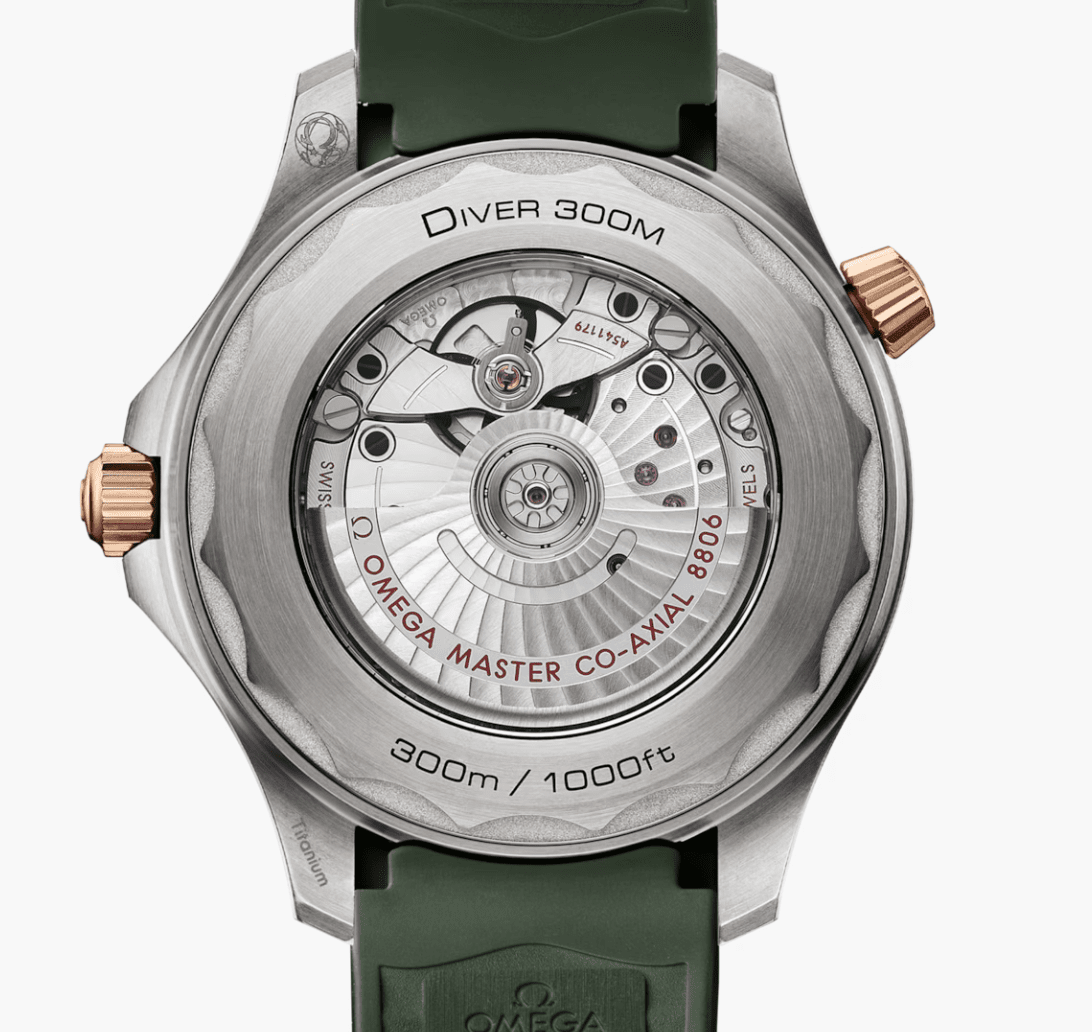 腕錶內置8806 Co-Axial Master Chronometer機芯,卓越的精準度、性能及防磁表現是用家信心的保證,從透明底蓋可觀賞其運作。