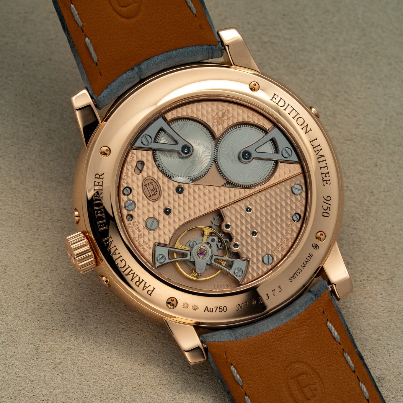 PF733機芯具29石,28,800擺頻及60小時動力貯存。鉑金和玫瑰金版參考價分別為HK$808,000及HK$747,000。